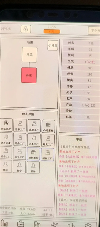 可以开商铺卖东西发财,ai只提供少量基础物资,卖完只能等着破产。