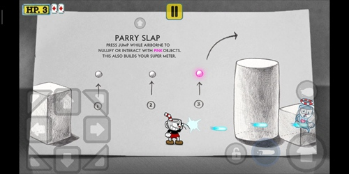 角色可以在空中时点击跳跃按钮来招架敌人的粉色技能。