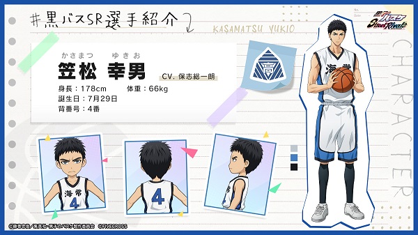 诚凛的首发控球后卫,也是诚凛篮球部最早的成员之一。是队伍的司令塔。喜欢讲冷笑话。