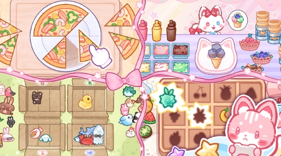 在这个虚拟的世界里,每个场景都有几个小游戏入口,你可以随时带着小猫开始游戏。