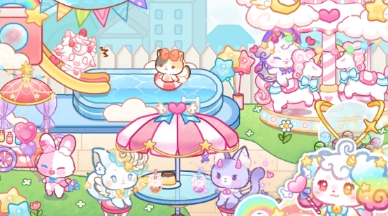 Look,这就是游乐园!小猫们可以在超级漂亮的旋转木马上旋转,也可以在游泳池里快乐地玩耍,还可以在小舞台上表演,就像大明星一样!器这里还有一个商店,在那里你可以选择超级可爱的小娃娃,还有精美的配饰和漂亮的衣服!