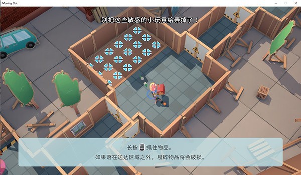 长按左键可以抓住物品,如果落在送达区域之外,易碎物品将会破损。