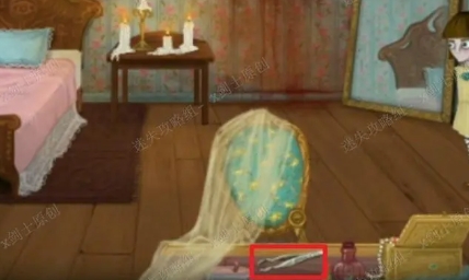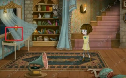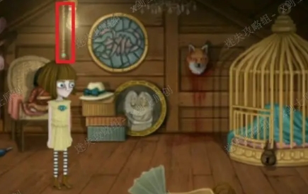 向左走下一个场景当中,在桌上拿到一个镊子,返回刚刚拿到黑色蜡烛的房间,拉下机关,上到阁楼当中。
