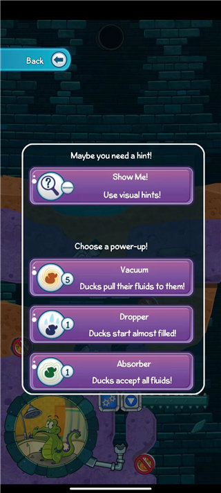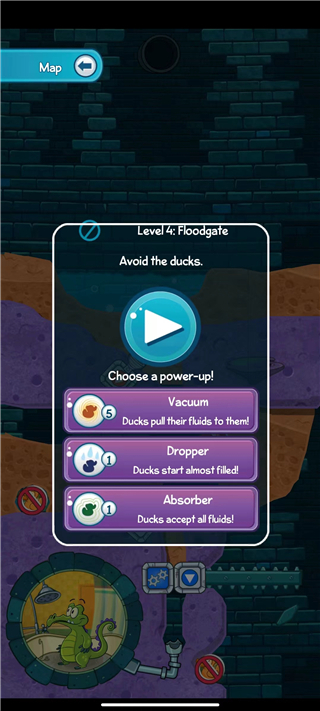 选择自己需要闯关的关卡,如图所示分为两种模式,一种是正常玩法(需要将水分给鸭子),另一种则是不能让鸭子碰到水;