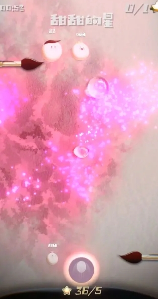 这里的技巧是:保持一定距离跳跃,仅让一个元宵跳上墨笔,登至高处,随时准备触碰墨迹。这样做是为了上下方同时出现墨珠时,能够同步控制上下方的元宵进行跳跃,而从上往下跳的元宵也保证了触碰高处墨迹的精准度。