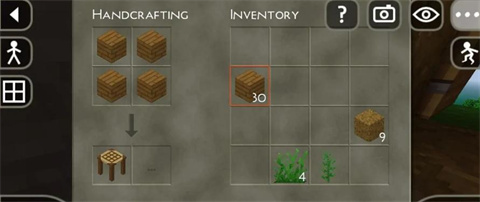 找到一棵树,持续点击直到收集到4块木材,随后打开你的合成界面(左侧第三个“田”字图标)。