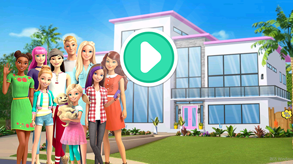 1、进入游戏后, 点击 主页面中间的绿色播放按钮即可进入芭比小镇