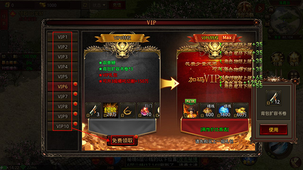 2、开始游戏前,玩家可以先领取满级VIP奖励,直线飙升战力。