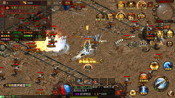 3、领取完VIP福利后就可以点击左上角主线开始打金啦!