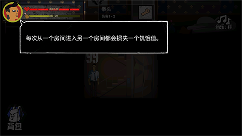 每进入一个房间,饥饿值就会减少一点。当饥饿值归零后,每次行动都会扣除2点生命值。