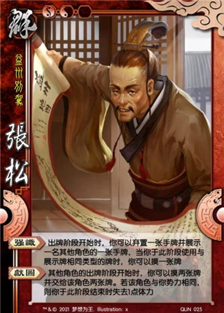 张松随着强将(核心)的增多,挑战中也伴随着机遇。队友越强,张松开始给予的两张牌的作用就发挥得越大。但同理,对手越强,张松暴毙的概率也变大了。毕竟张松大多数都是作为4号位出场的,队友打不出压制,自己还会崩血。