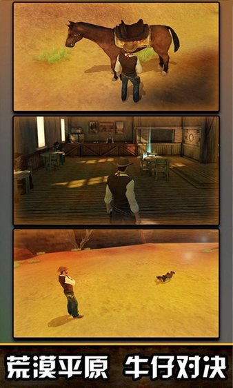 你是否曾幻想过自己是一位英俊的牛仔,头戴牛仔帽,骑着小马?玩家将扮演一名牛仔,不断行侠仗义,收集资源,完成各种任务。