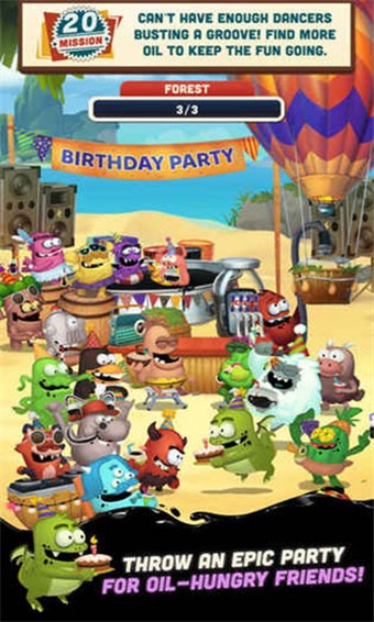 采油小怪2游戏下载是一款具有休闲特色的轻松小游戏。在一天的劳累之后,大多数人会选择玩一些简单有趣的游戏来放松自己,而这款游戏无疑是这类玩家的最佳选择。它以缓解压力为主打,是休闲游戏中的佼佼者。在游戏中,你需要扮演一个小怪物,在不同的地图场景中挖掘地下的石油并喝掉。你还需要帮助角色完成一系列任务。与前作相比,新作增加了许多有趣的玩法和新内容。在游戏中,你需要举办一场生日派对,但由于石油短缺,很难吸引朋友前来参加。玩家需要帮助主角收集足够的石油,以便邀请朋友并成功举办生日派对。从画面来看,新作相比前作有了显著提升,显得更加圆润且富有层次感。