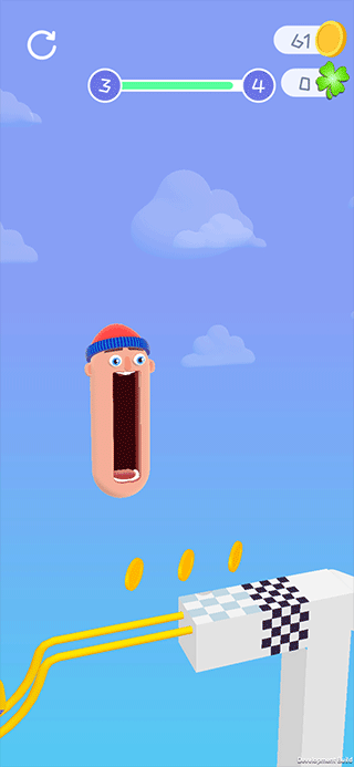 在终点时,玩家需要控制大头跳到x5中,这样能够获得5倍的金币奖励