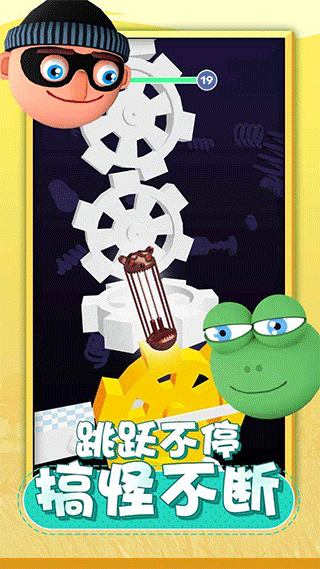 2、路途中会遇到金币和障碍物,当箭头指向金币时,长时间按住大头让它唱歌,这样跳跃会更高更远。
