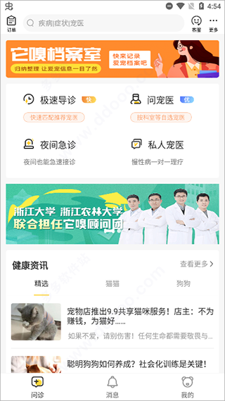 它遵循浙江大学教授顾问团制定的严格宠医入驻标准,通过高标准测试审核宠医的专业水平和服务质量。每位用户的宠医服务评价,包括接诊时长和星级评分等服务指数均公开透明,帮助用户根据数据反馈快速挑选最适合的宠医。此外,还有极速导诊功能,根据您的病情描述为您迅速匹配最合适的宠医。