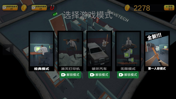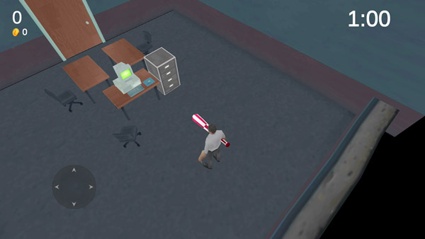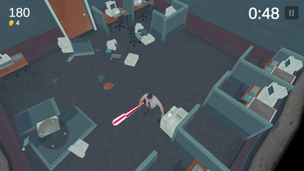 游戏的玩法与操作极为简单轻松,玩家能够操控角色自由穿梭,前往各个不同的房间展开探索与破坏,尽情体验解压时刻。在游戏推进过程中,会不断出现诸多障碍。每当成功完成挑战,游戏便会依据你在场上的表现予以打分,同时你还能收获金币奖励。你可以利用这些金币去兑换各类武器、时装等物品。不同武器在攻击力、攻击速度等属性方面各有差异,挑选一把称手的武器,畅快淋漓地破坏,把这间办公室砸个稀烂!