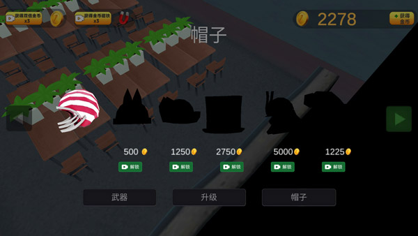 点击帽子,可以看到形态各异的帽子装饰,选择完毕后,点击右侧的绿色按钮,就可以开始。