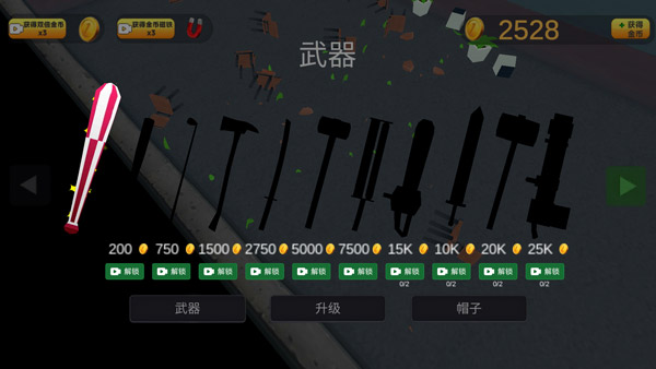 点击武器界面,通过消耗金币,可以解锁各种强大的武器。