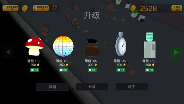 2. 点击升级页面,便能看到各式各样的道具。玩家可自由挑选道具来进行升级,从而为关卡内的挑战增添更多优势。
