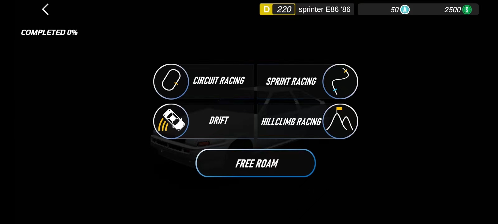 3、完成登录后,便能看到诸如赛车、短跑、漂移以及爬坡比赛等游戏模式,玩家能够自行挑选进行体验,在此以赛车模式为例,