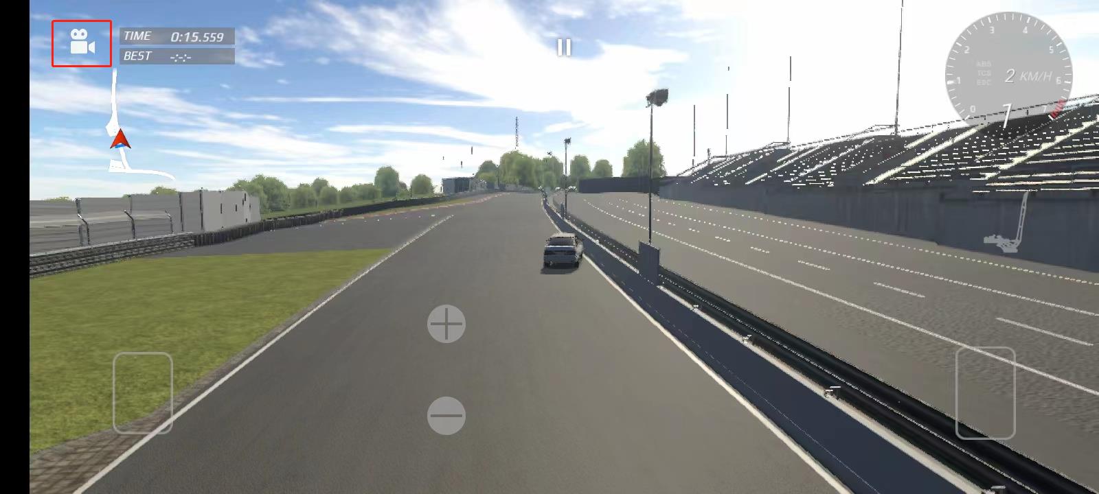 6、当进入赛道后,我们能够借助左下方的按钮来操控车辆方向,利用右边的刹车与油门按钮掌控车辆速度,此外,还能通过摇动手机实现遥感控制。