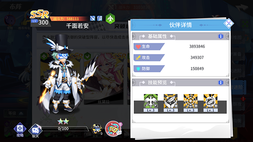 “活力之风”可为所有风系角色添加10秒的活力(魔力回复速度提升20%),才能让己方可以更高效的使用技能进行输出;“潜力激发”和“刃爪之舞”,一个是丝黛拉产生增益提高生命和攻击,一个是对全体角色产生增益,在6秒内提高15%的伤害。这也是这个阵容的强悍点之一,阵容中多个角色都可以为队友或多或少增添一些增益。