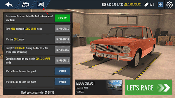 1、打开俄罗斯汽车漂移游戏,游戏内如图;