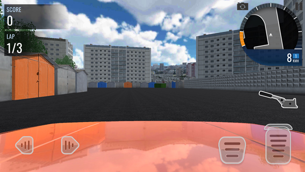 5、进入游戏后画面如图所示,玩家要驾驶俄罗斯汽车进行跑圈。屏幕左侧用于控制方向,右侧是油门和刹车。