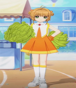 (1)《啦啦队表演服》这套无袖橘红色连衣裙,活力满满,是小樱可以在学校啦啦队大会表演的服装,还可以在与各社团加油比赛的时候穿上哦。