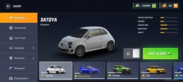探索众多游戏地点:大都市、沙漠、海滩、机场、港口、漂流道、贫民区和高端地区、建筑工地等等。在这里,你会发现跳跃和特技区、高速雷达、枪战、追捕和警察逃跑。漂移和PVP模式可用!