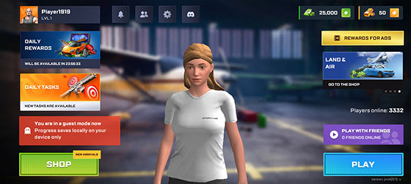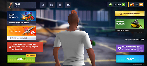 5、接下来正式进入游戏界面,界面左上角显示的是昵称信息,右上角则是当前所拥有的资金数额,点击左下角的“SHOP”即可进入商店。