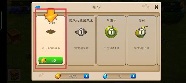 在商店中找到需要种植的植物,并用金币进行购买,购买植物的同时需要用于种植植物的土壤。