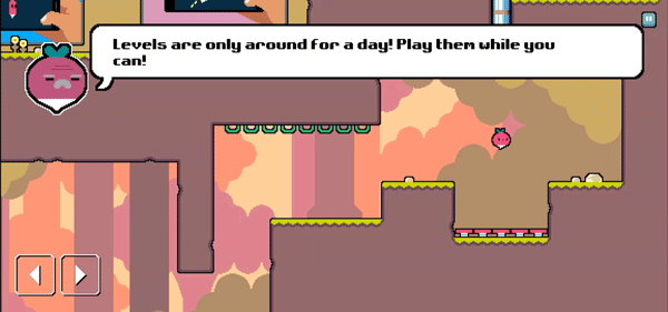 《每日萝卜爸爸》(Daily Dadish )是一款可爱像素风的闯关游戏。在游戏中,玩家操控萝卜爸爸开启冒险之旅,去寻找自己的孩子。过程中,玩家得帮助萝卜爸爸避开重重陷阱与障碍,从而顺利通关。