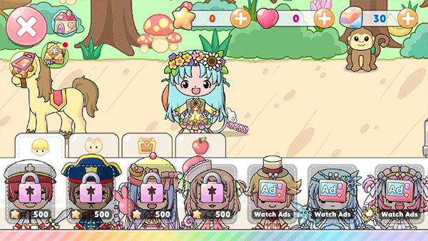 3、超过100个动物角色供您饲养和照顾,例如小独角兽,小仙女,顽皮猫,可爱狗。