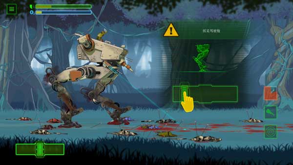 3、一旦敌人爬上机器,为避免机器受损,需左右晃动驾驶舱,把敌人晃落下去。