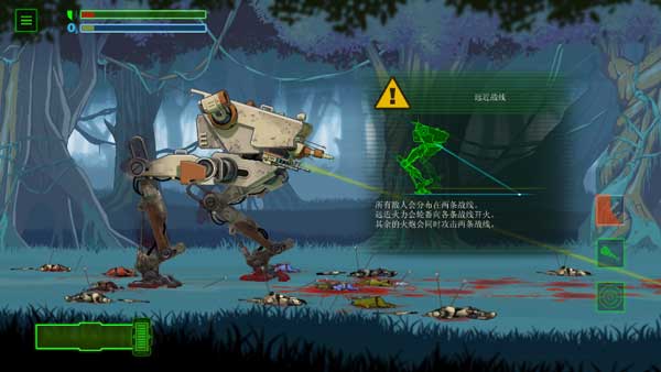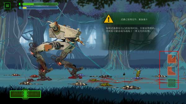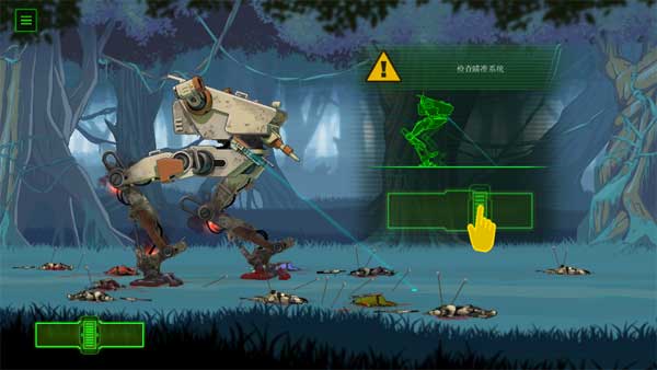 1. 打开游戏后,会出现一段剧情介绍,待故事讲述结束便可开始游戏。第一步要做的是检查机器的瞄准系统,点击左下角的按钮来实现左右移动。