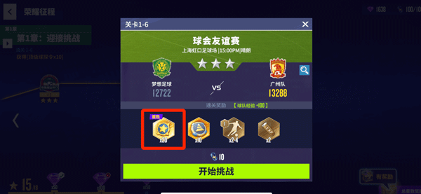 5、通过完成首次挑战的关卡,顺利过关后便可获取20声誉值。声誉值无法通过一个关卡重复获取,所以想要加快俱乐部功能解锁的小伙伴可得抓紧闯关了。