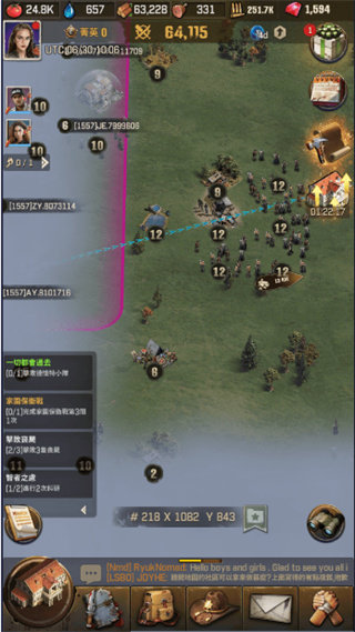 在中间的环节,玩家们重点在推进游戏的主线,如果对任务不清楚就可以透过左下侧的任务提示栏进行,我们会逐步的搭建起整个庇护所的系统,招募更多流离失所的人来到避难所,并承担起避难所的建造与看护的重要责任。 逐步的建立起消防局、警察局、练兵场、马厩等,训练出不同的战斗兵种。 所有的建筑和兵士的训练都需要消耗一定的时间,如果加速够用,可以加速在比较重要的建筑升级节点上。