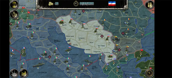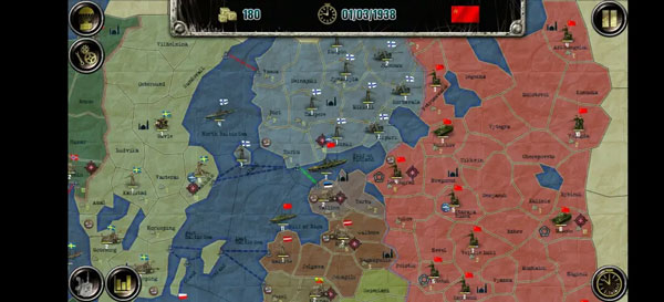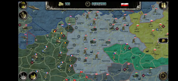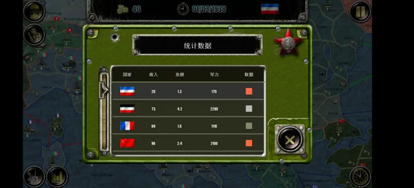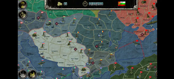 欧洲战场共有28个国家,500个左右的地区,共有三个阵营,分别为同盟国、轴心国和社会主义联盟,同时还有个别中立国。(按我的理解)国家按照实力科技和特殊事件分为大中小三档:大国作为阵营领袖,除某善于投降的国家外都不会改变阵营,且收入高,初始兵力强可能会触发傀儡政府事件获得小国军队和土地的控制权(仅限AI);中型国家可能会在AI事件中改变阵营,初始兵力都是大几百,科技参差不齐;小型国家除了可能改变阵营外还可能直接触发傀儡政府事件,改旗易帜,此外玩家玩小国的初始兵力以志愿军为主,第一回合不能动。以下将分别进行介绍。