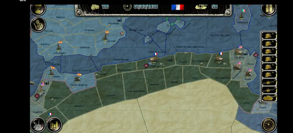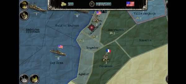 初始兵力:21个陆军师,一架轰炸机,四架战斗机,5条船