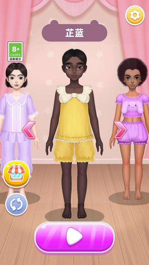 1、玩家完成实名认证后,点击如“播放”样式的按钮,即可着手为自己的模特进行妆容与服装的搭配。