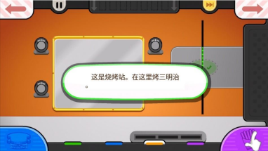 4、刚开始会有剧情介绍,点击右下角的跳过就可以啦,如图所示,这里是烧烤站,可以在此烤三明治哦