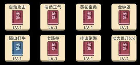 秘籍第三档:血量提升、妙手回春、回春树、攻击力小、环绕毒剑、环绕飞剑、排山倒海、隔山打牛、背向攻击、东方剑、狂浪刀、布置陷阱、战斗大师。它们的优点是出现率高、实用、看广告也能刷出来。