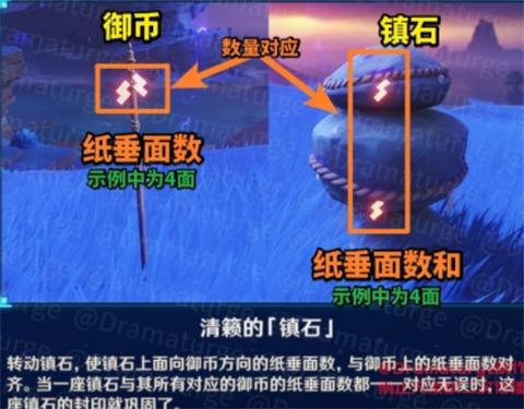 【解法教学】这个谜题要求你转动上下镇石,在镇石朝着「御币」的三个方向上,镇石上层和下层的纸垂数相加等于「御币」上的纸垂数。