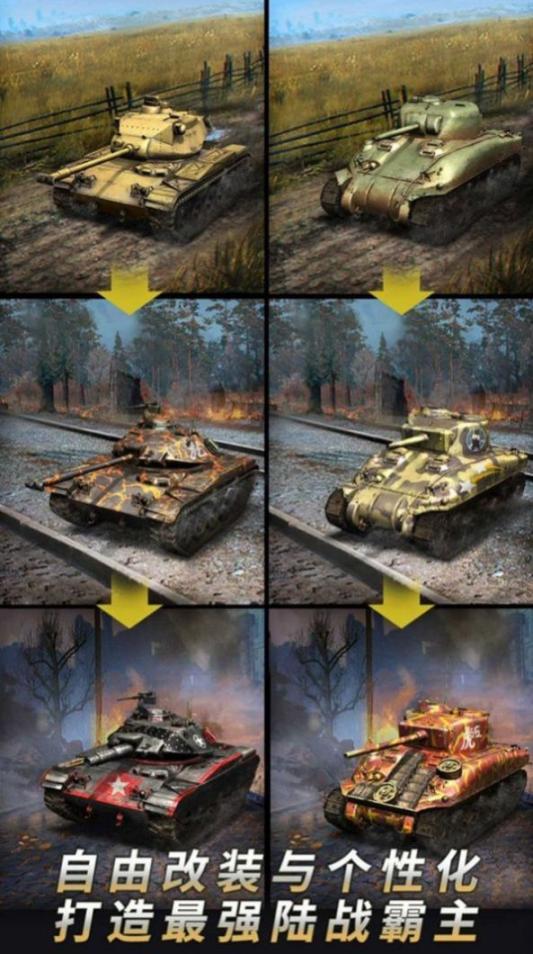 多个的坦克类型,有着不同的能力,一起进行顶级的对决作战;