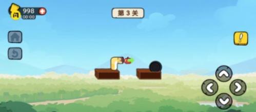 4、待你的头部抵达边缘之后,向上行进直至站起身来,接着吃掉右侧的苹果。如此一来,即便变长也不会掉落。