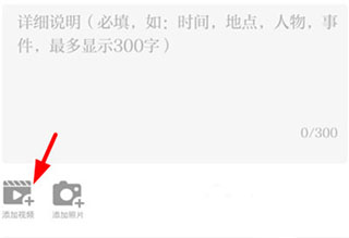 进入爆料页面后,找到如图所示位置的【上传视频】功能按钮,即可完成爆料。