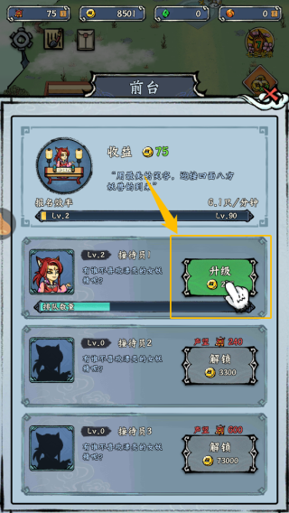 3、根据任务要求选择不同的页面,如现在需要升级接待员至3级