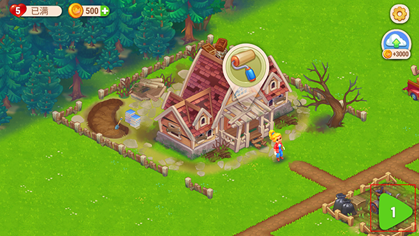 来到游戏中,若想经营好农场,需通过完成任务来获得金币,点击左下角开始第一关。
